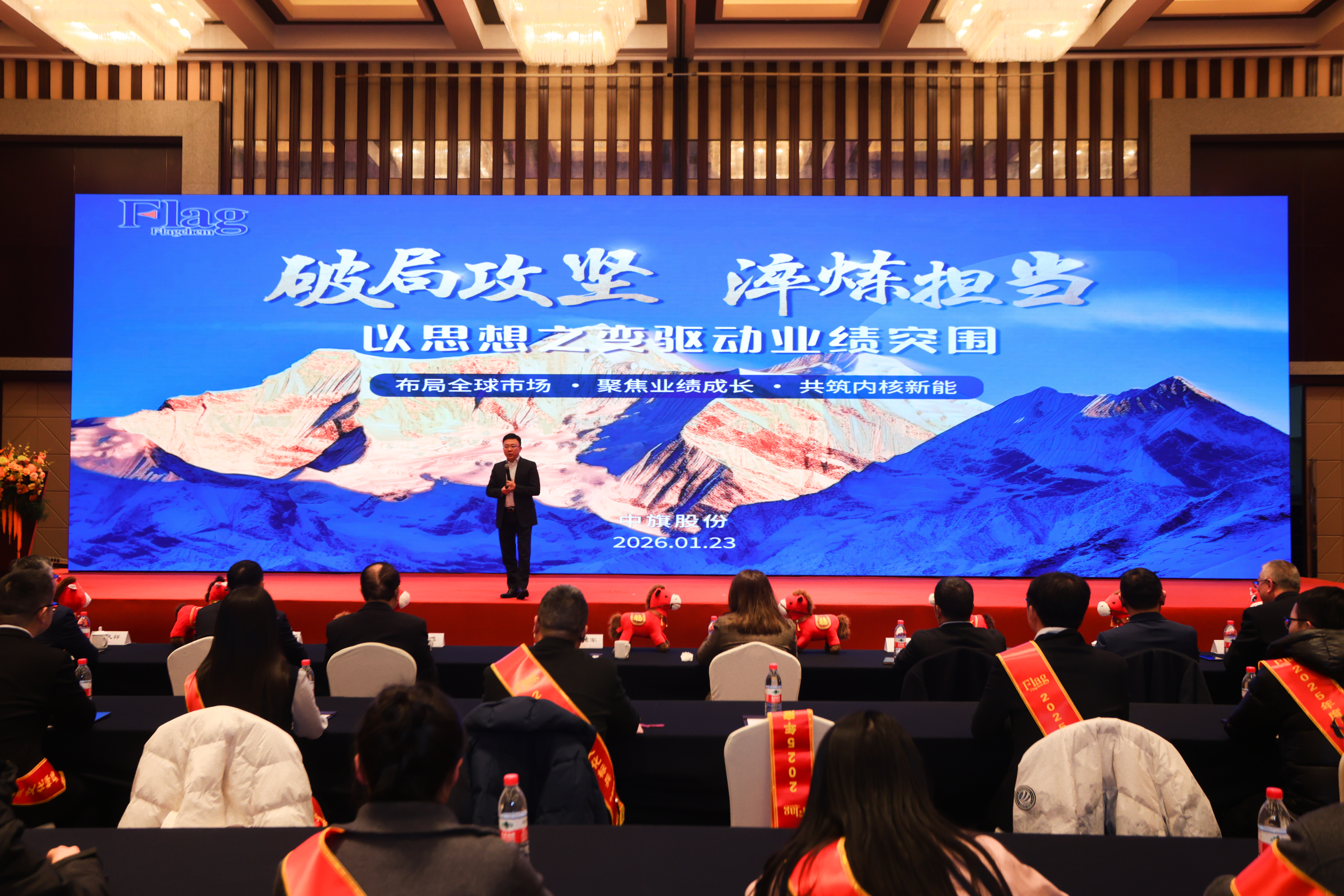 2026年1月23日,中旗股份2025年度總結表彰暨戰略發布大會隆重召開。公司管理團隊與員工代表齊聚一堂,共同回顧2025年發展歷程,發布2026年戰略規劃,表彰年度先進,凝聚共識,擘畫未來。
